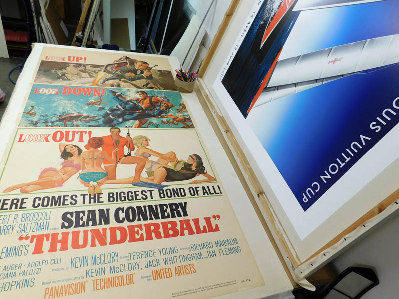 3: Challenges of size and paper type succesfully backed: Over-size Thunderball poster and Razzia poster